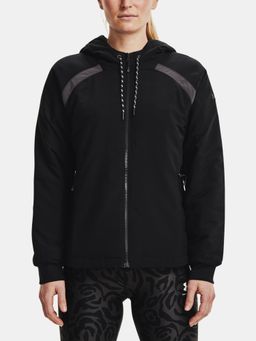 Női sportdzseki Shinih szintetikus szigeteléssel, amely melegen tart, miközben kis térfogatának köszönhetően minden irányban szabadon mozoghat. A dzseki felületét UA Strom védi, amely taszítja a vizet és véd a nedvességtől.